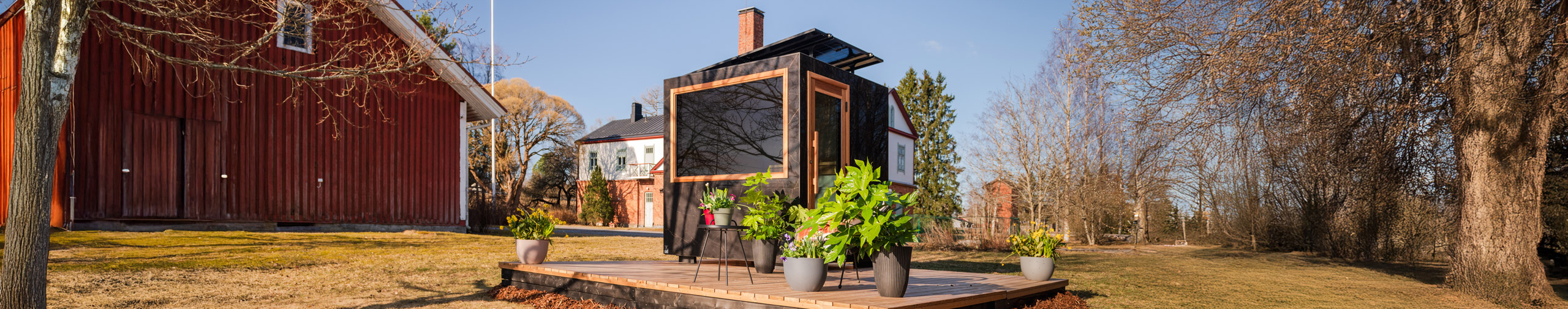 La collezione di saune Kirami FinVision® -Zero invita al relax anche nei cortili e nelle casette più piccole - in modo energicamente efficiente.